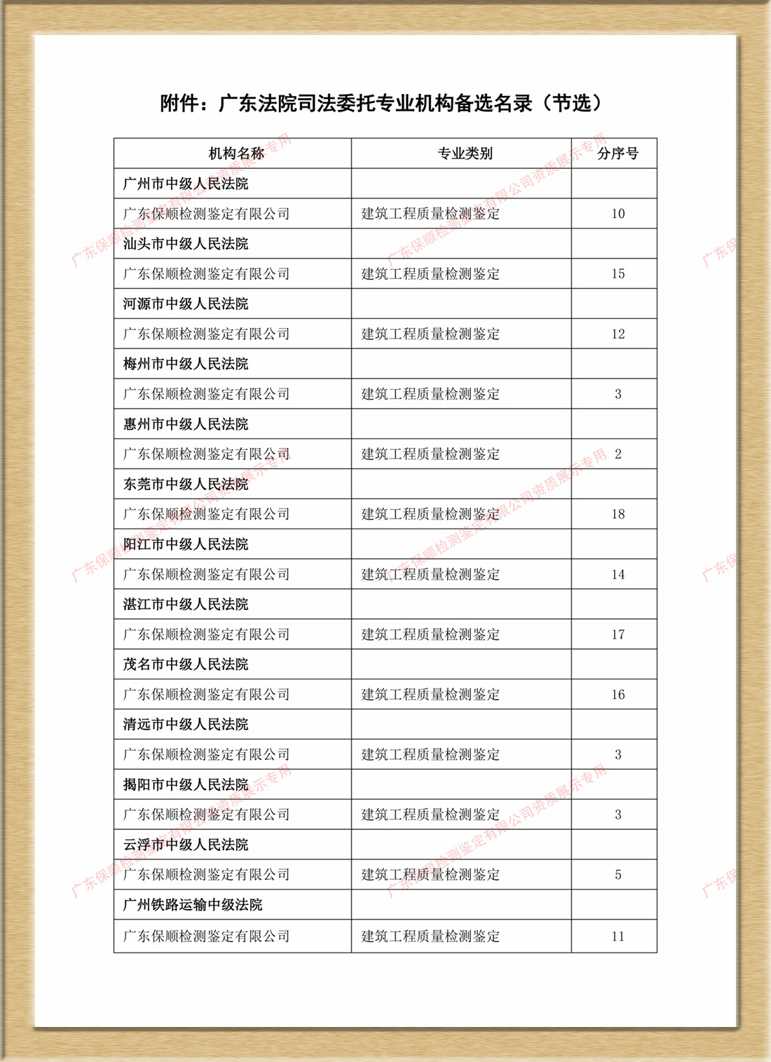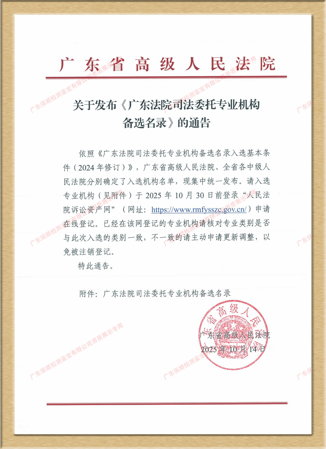 法院司法鉴定名录 - 广东保顺检测鉴定有限公司