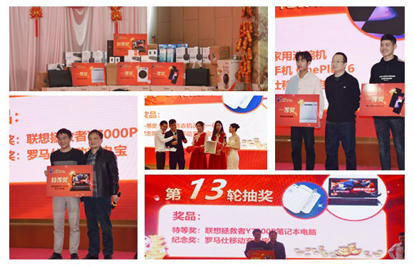 年会全程穿插十三轮抽奖环节,笔记本电脑、手机 、洗衣机、洗碗机等总值近10万元的两百多件奖品轮番抽!