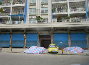 广东省佛山市陈村旧圩樟村街31号陈村镇三街樟村街18号商铺(以下简称“该房屋”),该房屋主体为七层框架结构,以钢筋混凝土柱、梁及板等构件共同承重,180mm厚砖墙围护及分隔;本次勘察范围为该房屋首层局部1-5~2-7×2-A~2-B;陈村镇三街樟村街18号商铺使用区域(以下简称“该房屋勘察区域”),该房屋首层层高为5.5m,夹层高为2.5m;勘察面积约为315.58m2。