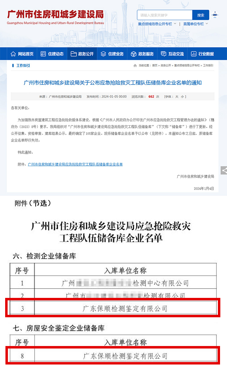 广州市住建局(检测、房屋安全鉴定)应急抢险救灾工程队伍储备库企业资质