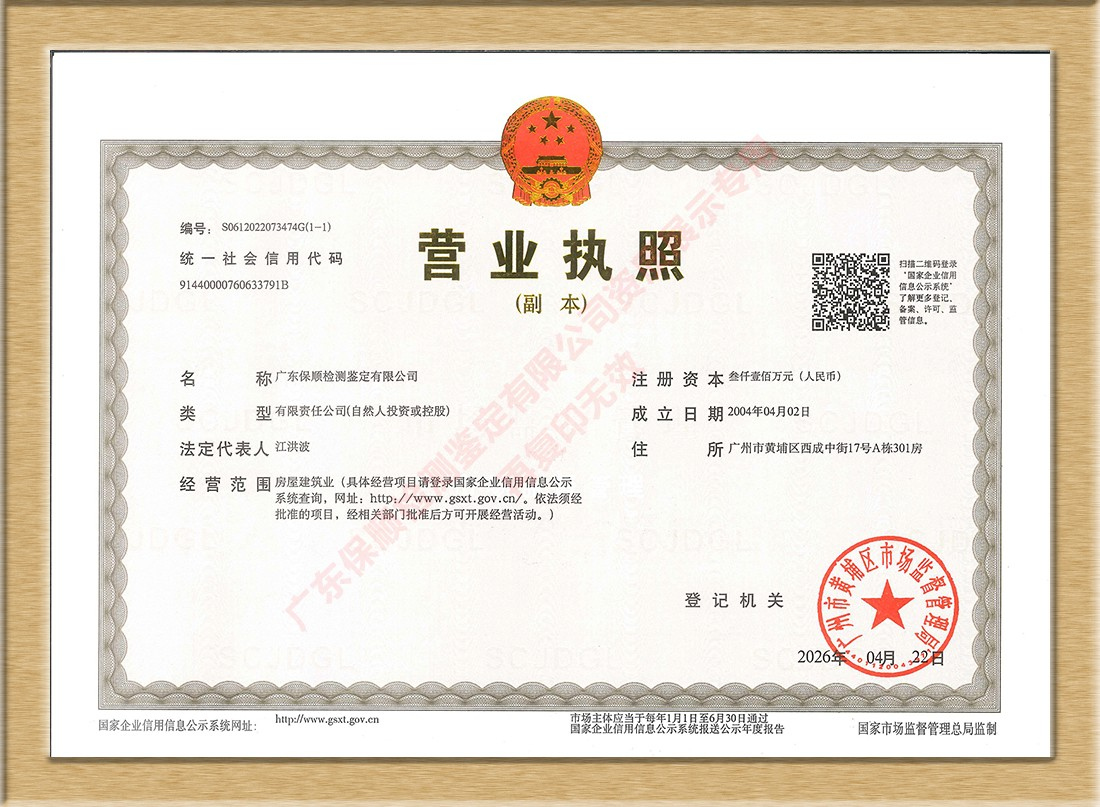 广州市房屋安全鉴定单位备案证书